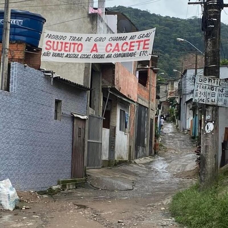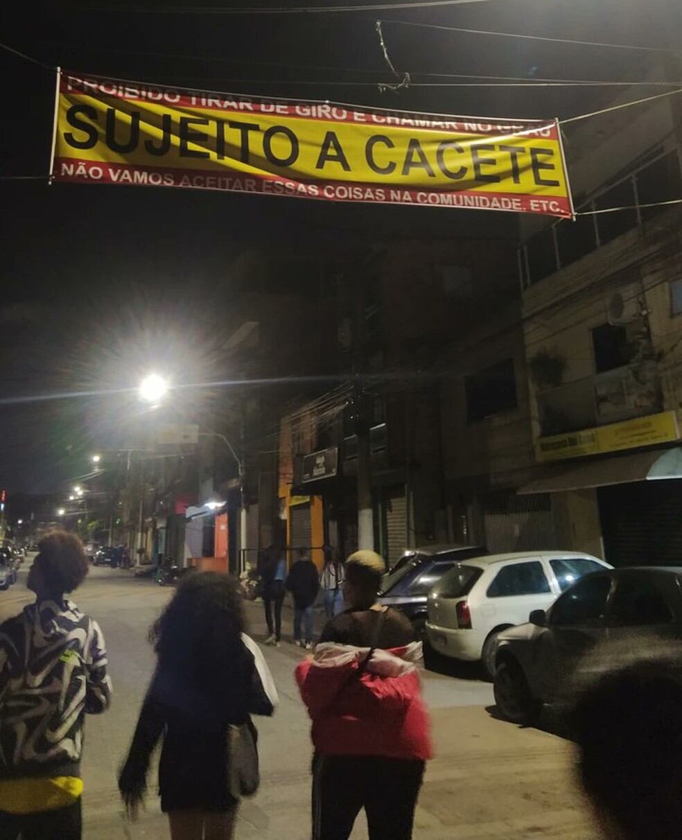 A Polícia Civil investiga a colocação de faixas com ameaças de “dar cacete” em motociclistas que empinem motos ou façam barulho em comunidades da capital paulista, interior e Grande São Paulo. Também há registro de cartazes semelhantes em Vitória, no Espírito Santo.