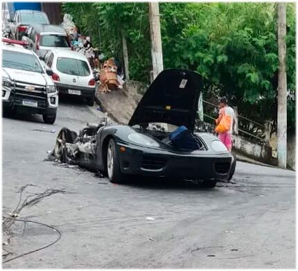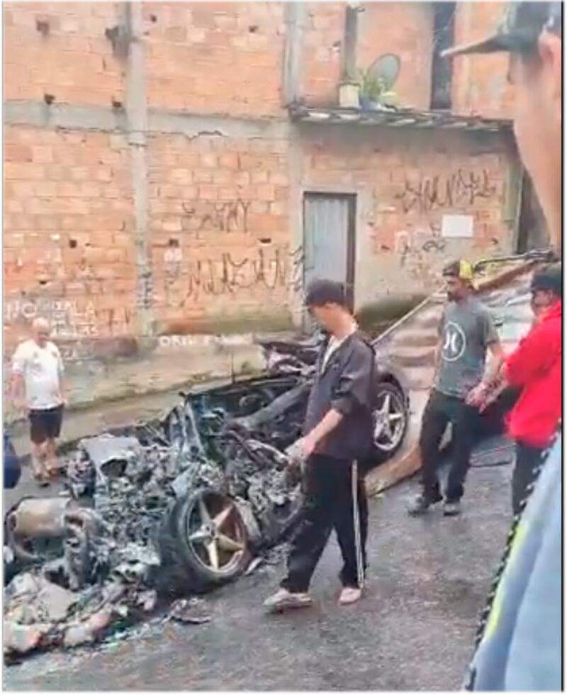 “Dois coisa curiosas. O que essa Ferrari estaria fazendo numa favela (sabemos) e outro, como pegou fogo?”, questionou um leitor no Twitter.