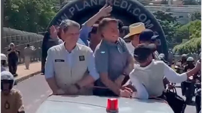 Bolsonaro chegou ao local do evento na carroceria de uma caminhonete, à frente de uma “motociata” com centenas de participantes, acompanhado pelo ministro Tarcísio. Durante 12 minutos, ele caminhou em meio aos apoiadores, distribuindo abraços, apertos de mão e posando para selfies.