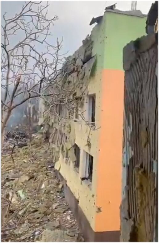 Em um post no Facebook, a Câmara Municipal de Mariupol disse que as forças russas jogaram bombas no hospital infantil. “A destruição é colossal”, diz a postagem.