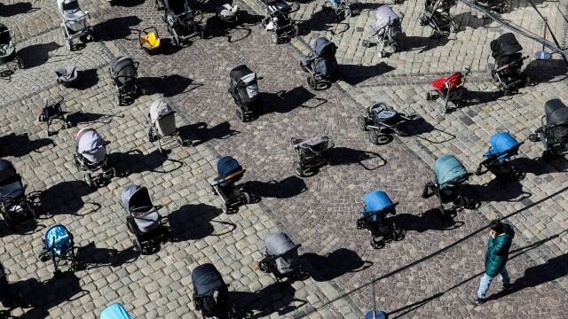 “Lembre-se de seus filhos quando eles eram pequenos e sentados em carrinhos como esses” desabafou Zhuravka Natalia Tonkovyt, uma cidadã canadense de origem ucraniana que estava passando, se dirigindo de forma figurativa às mães ucranianas. “Algumas [crianças] não serão colocadas nesses carrinhos porque estão mortas. Compare com seus próprios filhos, lembre-se de seus sentimentos em relação a seus próprios filhos. Não quero ver carrinhos vazio”, disse a canadense.