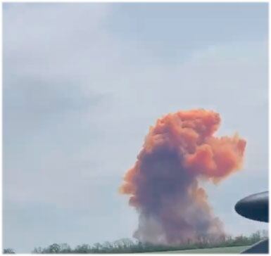 Um vídeo compartilhado nas redes sociais mostra o momento em que a nuvem alaranjada sobe ao céu na cidade de Sloviansk, no leste da Ucrânia, onde um bombardeio russo causou vazamento em uma fábrica de nitrato de amônia, nesta quarta-feira.