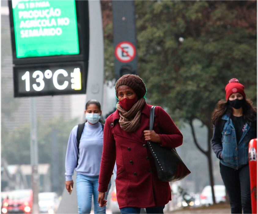 As temperaturas registram quedas mais acentuadas em áreas das regiões Centro-Oeste e Sudeste, mas podem atingir o sul da região Amazônica, “configurando o segundo episódio de friagem neste mês de maio”, informou o instituto.