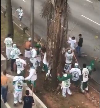 Em um dos vídeos que circulam nas redes sociais, é possível ver pessoas uniformizadas com a camisa do Goiás agredindo um homem com pedaços de pau. Segundo as postagens, ele seria um torcedor do Corinthians. Ainda na filmagem, é possível notar a polícia se aproximando e os torcedores correndo. Assista as imagens fortes a seguir: