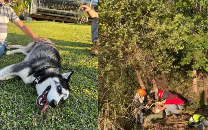 Foram dez horas até a cadela Pandora, da raça husky siberiano, ser resgata. Por volta das 6h30, seu tutor Jonas Diniz, saiu para passear com o animal em um terreno vazio perto do condomínio onde mora, em Marília, interior de São Paulo nesta terça-feira (21).