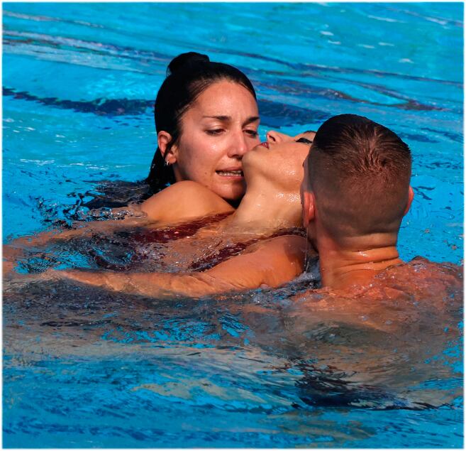 A treinadora disse que os salva-vidas ficaram paralisados quando viram o que estava acontecendo. “Foi um susto, porque ela ficou 2 minutos sem respirar”, disse. Funtes explicou que o nado sincronizado é um esporte muito duro, mas as atletas têm que mostrar graça e leveza. “Essa é a graça.”