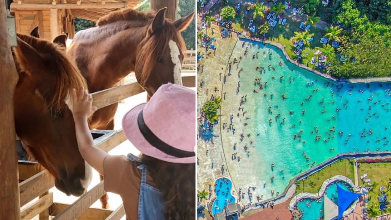 Durante o passeio em uma área de 50 mil metros quadrados com temática de Velho Oeste, as crianças podem ver cavalos, cães, cabritos, avestruzes, pavões, mini vacas, mini jumentos, mini burros, ovelhas, porquinhos da índia, perus, marrecos, entre outros.