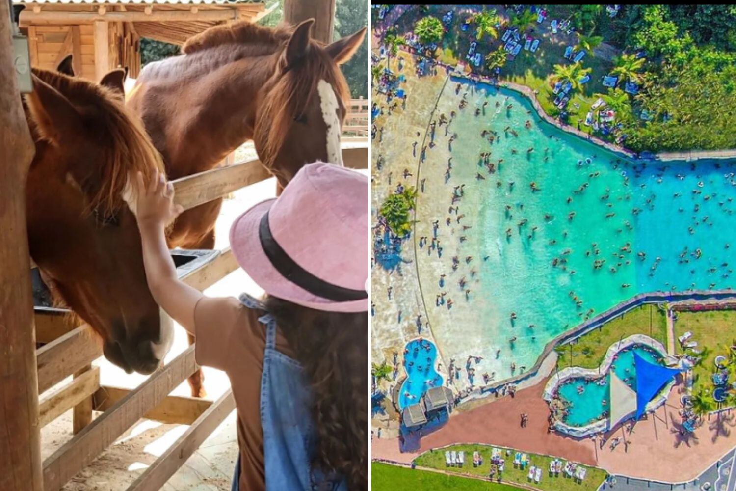 Durante o passeio em uma área de 50 mil metros quadrados com temática de Velho Oeste, as crianças podem ver cavalos, cães, cabritos, avestruzes, pavões, mini vacas, mini jumentos, mini burros, ovelhas, porquinhos da índia, perus, marrecos, entre outros.