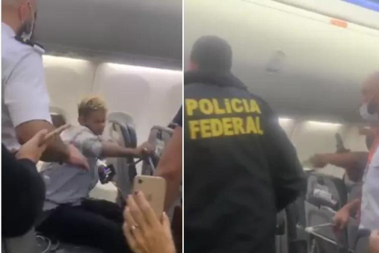 Um policial federal, identificado com um colete da corporação, aparece e tenta acalmar o homem. Nesse momento, outros passageiros já estão exaltados e começam a xingar o autor da confusão. “Vagabundo”, diz uma mulher. “Abaixa essa bola, a polícia chegou”, disse outra pessoa.