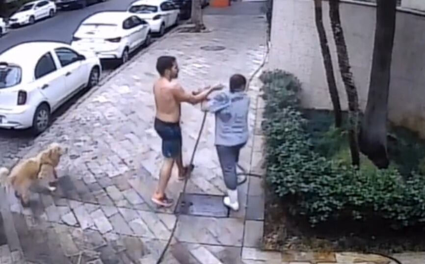“Ele já tomou a mangueira da minha mão e começou a falar que ia me mostrar como desperdiçava água”, disse ela, que acabou sendo molhada pelo homem.