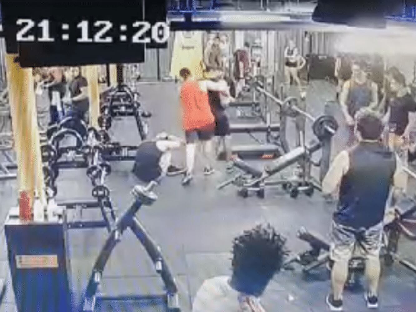 “Quando eu recebi o soco, na realidade eu estava discutindo com o amigo dele [o homem de camiseta vermelha]. Ele veio por trás do amigo dele, eu nem estava esperando”, afirmou Gustavo, que logo depois continuou sendo agredido e bateu com a cabeça na estrutura de ferro de outro aparelho.