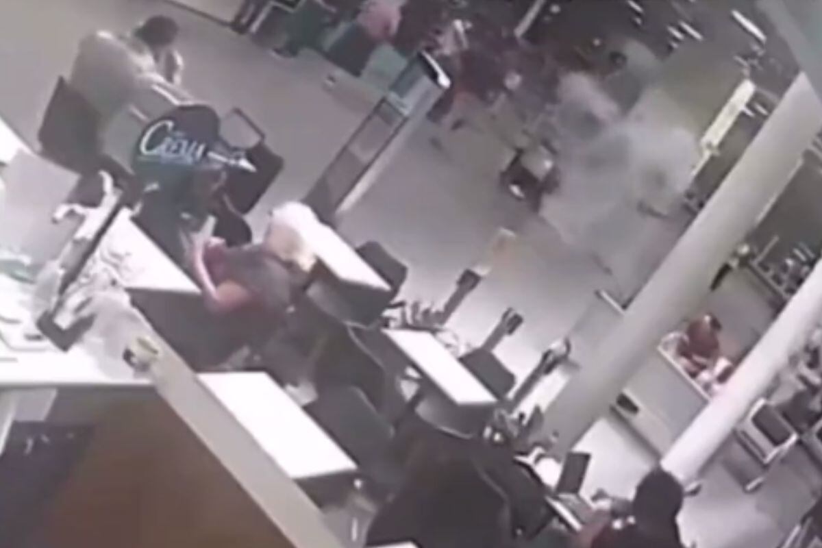 O caso ocorreu por volta das 9h. Por conta da explosão, parte do teto do aeroporto se desprendeu, uma vez que a bagagem chegou a bater no forro.