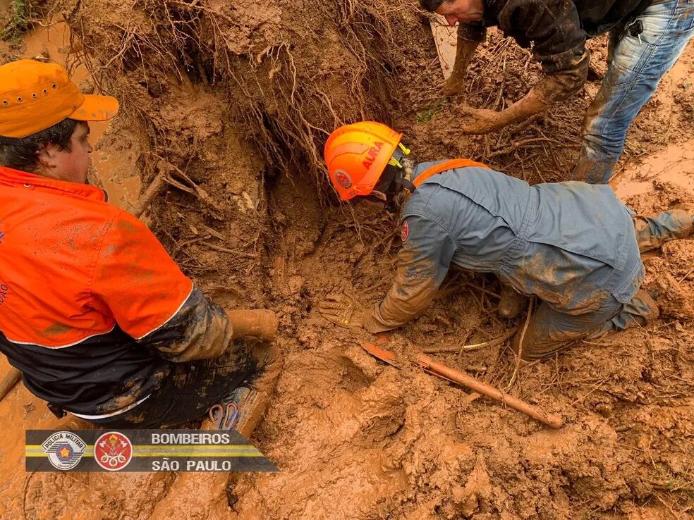 Um cachorro foi resgatado pelo Corpo de Bombeiros após ficar soterrado devido a um deslizamento de terra em Campos do Jordão, em São Paulo.