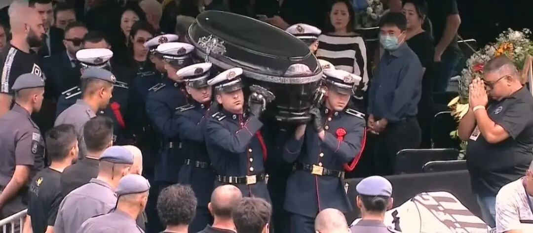 Como programado, o caixão segue por cortejo pela cidade até o Memorial Necrópole Ecumênica, também em Santos, onde será enterrado em cerimônia restrita a amigos e familiares.