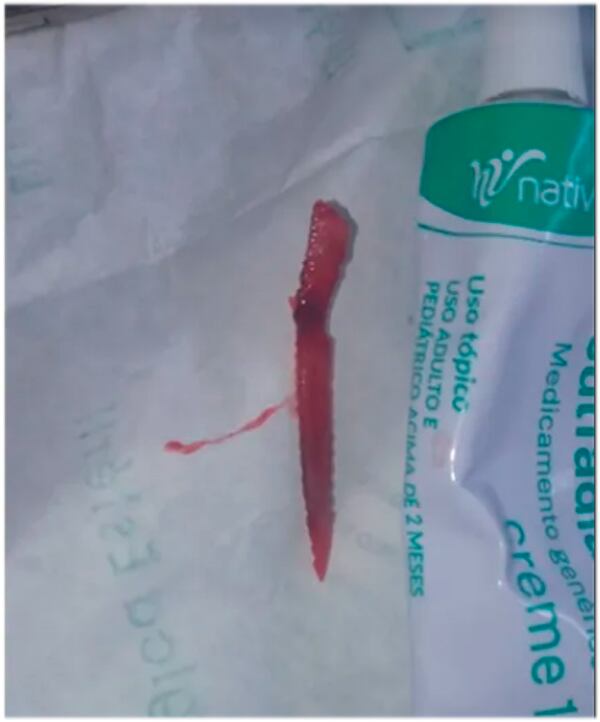 De acordo com a mãe, a menina bateu o pé no peixe morto enquanto nadava e o ferrão, de cerca de 7 cm, perfurou profundamente seu pé, causando dor e intenso sangramento.