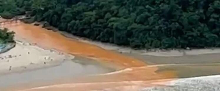 No vídeo é possível ver trechos de mata destruída pelos deslizamentos e um “rio de lama” que se formou e desembocou no mar.