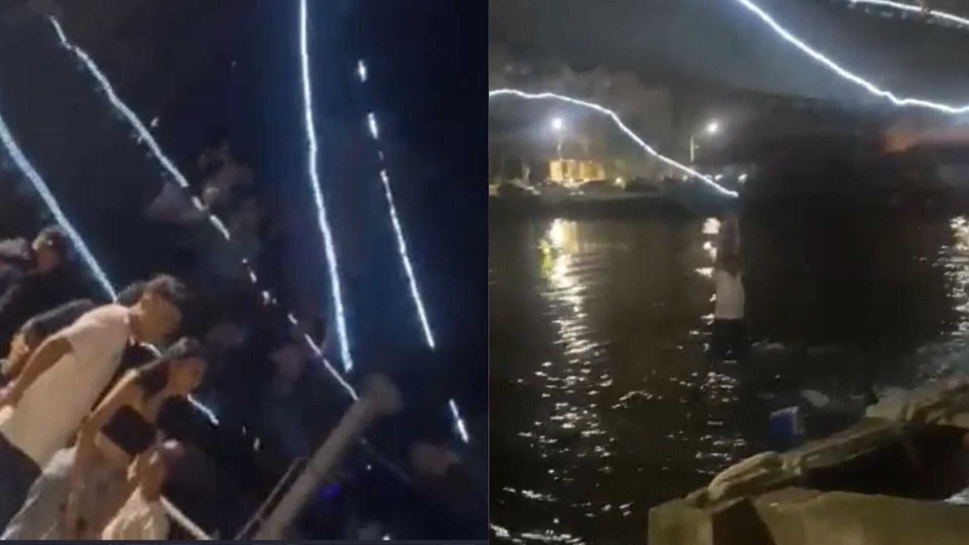 Nas imagens, é possível ver que um homem ficou pendurado na ponte para tentar impedir cair na água. Outras pessoas, que caíram, nadavam em busca de socorro. Pelo menos 36 foram salvas pelos bombeiros.