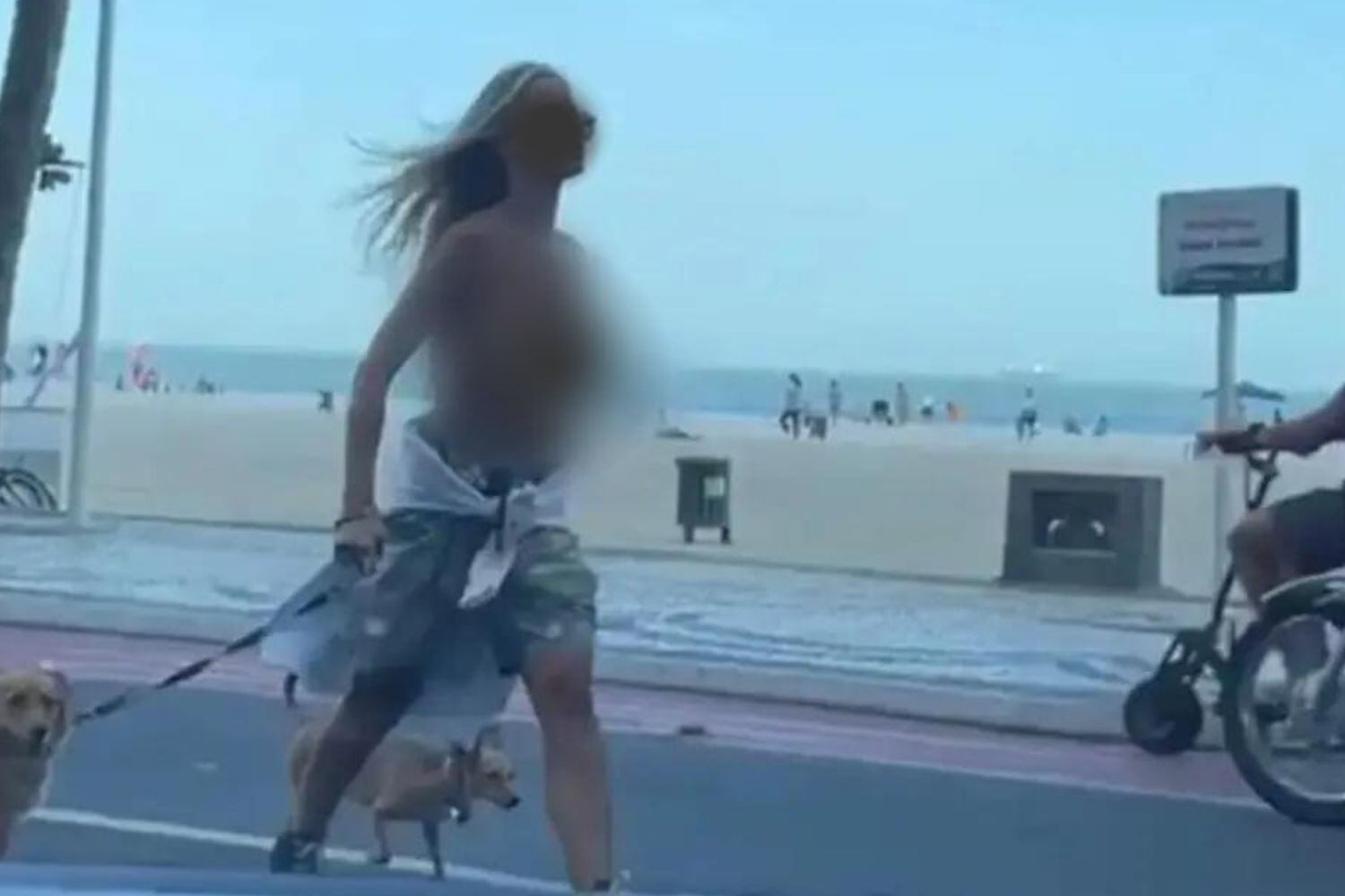 O caso aconteceu no último sábado (13), na Avenida Atlântica. Nas imagens é possível ver quando a mulher caminha com os seios à mostra pela orla da praia, chamando a atenção de outras pessoas. Logo depois, ela acabou sendo detida e, segundo outras imagens, ficou “indgnada” com a situação.