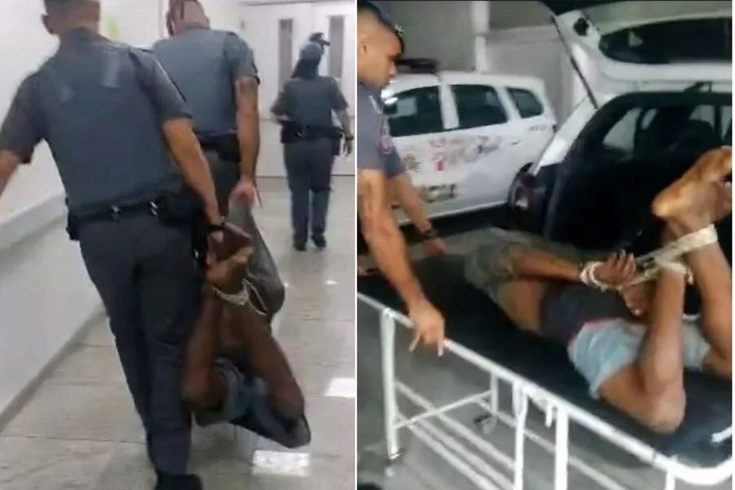 O autor do vídeo que flagrou policiais militares carregando um homem negro, de 32 anos, com as mãos e pés amarrados, disse que o detido “gritava de dor”. Suspeito de furtar um mercado, ele foi levado até a Unidade de Pronto Atendimento (UPA) da Vila Mariana, onde a cena foi gravada, e permaneceu amarrado por pelo menos 3 horas, conforme relatou a testemunha.