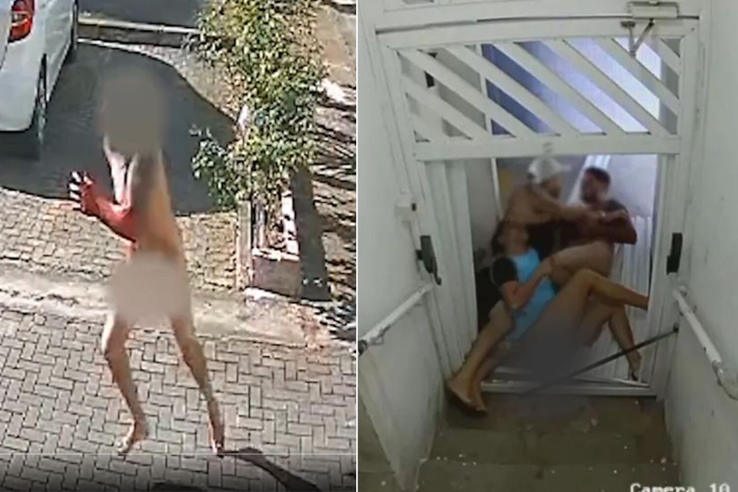 Quando eles estavam no térreo, a irmã e o marido tentaram fechar uma porta ao perceber a aproximação do homem pelado, mas ele conseguiu abri-la e partiu para cima da mulher, que sofreu cortes nas mãos. Depois disso, o marido dela conseguiu entrar em luta corporal contra o agressor e o imobilizou.