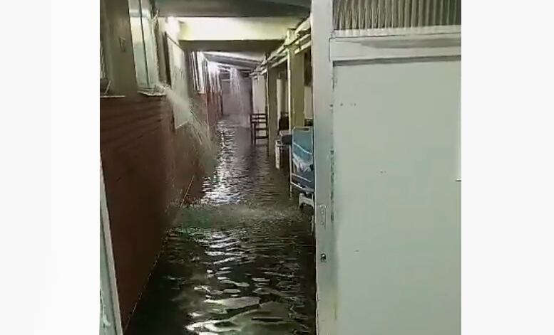 A inundação foi tão forte que imagens feitas por usuários mostram a água entrando até pela janela e os corredores completamente alagados.