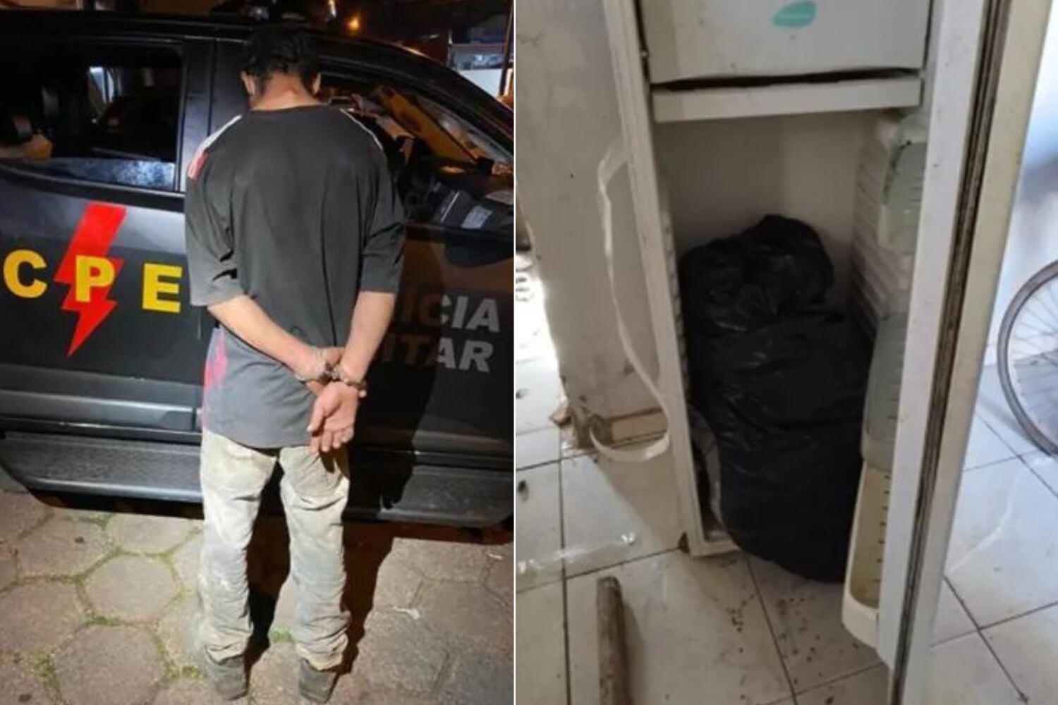 Assim, os PMs questionaram o homem sobre a companheira e ele ficou nervoso, fugindo em seguida. Os policiais entraram na residência, quando encontraram vários vestígios de sangue e o corpo da vítima, enrolado a um saco plástico, dentro da geladeira.