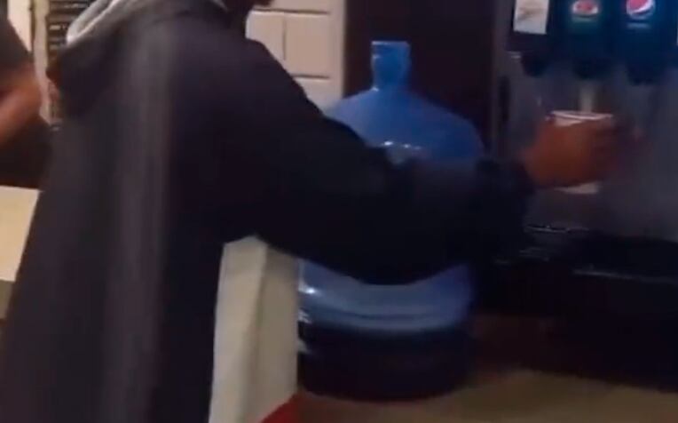 No vídeo vemos um jovem enchendo um copo na máquina de refrigerante do estabelecimento e jogando dentro do galão, em uma tentativa de enchê-lo. Um funcionário da rede se aproxima e diz que ele não pode fazer aquilo, mas ele responde. “Paguei a parada. É seu? Se eu paguei à vontade e tomar tudo isso aqui?”