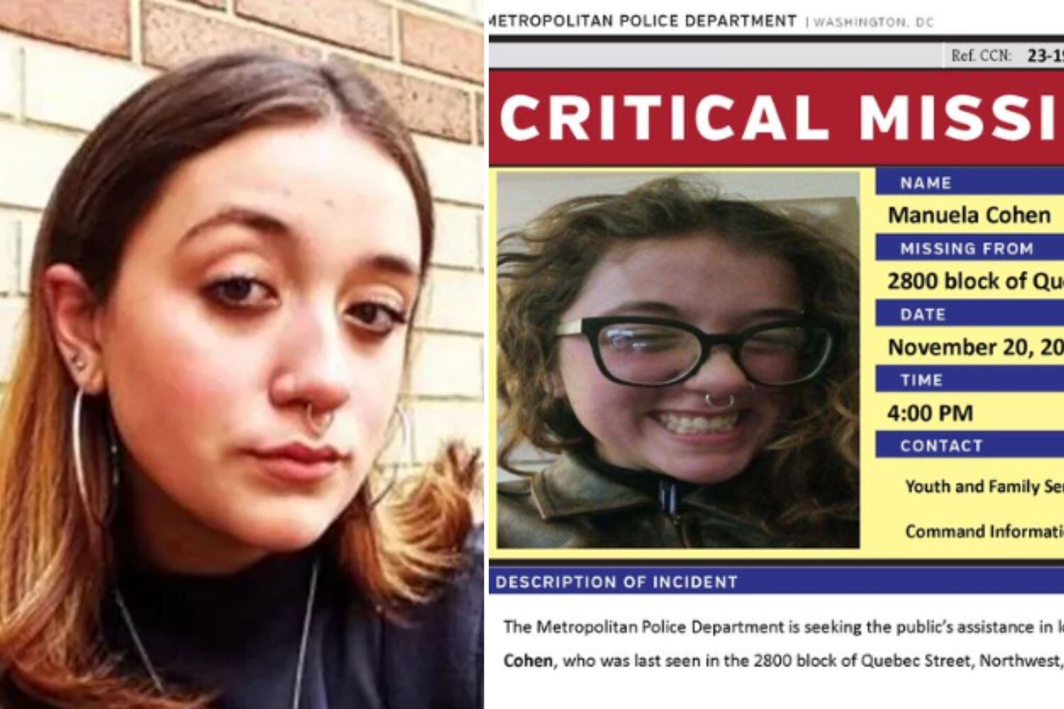 A brasileira Manuela Keller Cohen, de 17 anos, que estava desaparecida há mais de 20 dias, nos Estados Unidos, foi encontrada pela polícia norte-americana na quarta-feira (13). Segundo o pai dela, o motorista de aplicativo Bruno Cohen, a jovem estava em uma cidade de Maryland, a cerca de 30 minutos de Washington D.C, onde a família mora.