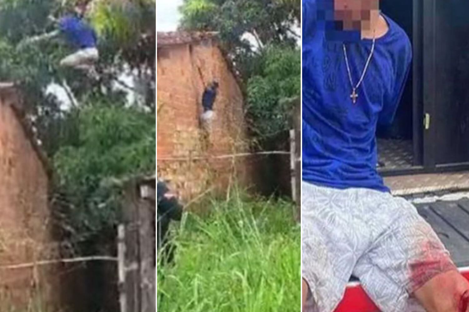 Ele foi abordado pelos agentes, mas tentou fugir pulando em cima do telhado de casas. Ele conseguiu acessar vários imóveis com saltos impressionantes, mas em um determinado ponto não conseguiu concluir um deles e acabou caindo no chão.