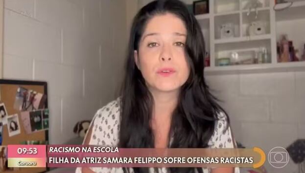 A atriz Samara Felippo, que denunciou um ataque racista cometido contra a filha de 14 anos, na escola de alto padrão que ela estuda, em São Paulo, detalhou que alunas escreveram uma “frase grave e criminosa” no caderno da vítima. Em entrevista ao programa “Encontro”, da TV Globo, a artista disse que quer a expulsão das agressoras, mas também ressaltou que é contra qualquer tipo de cancelamento ou linchamento.