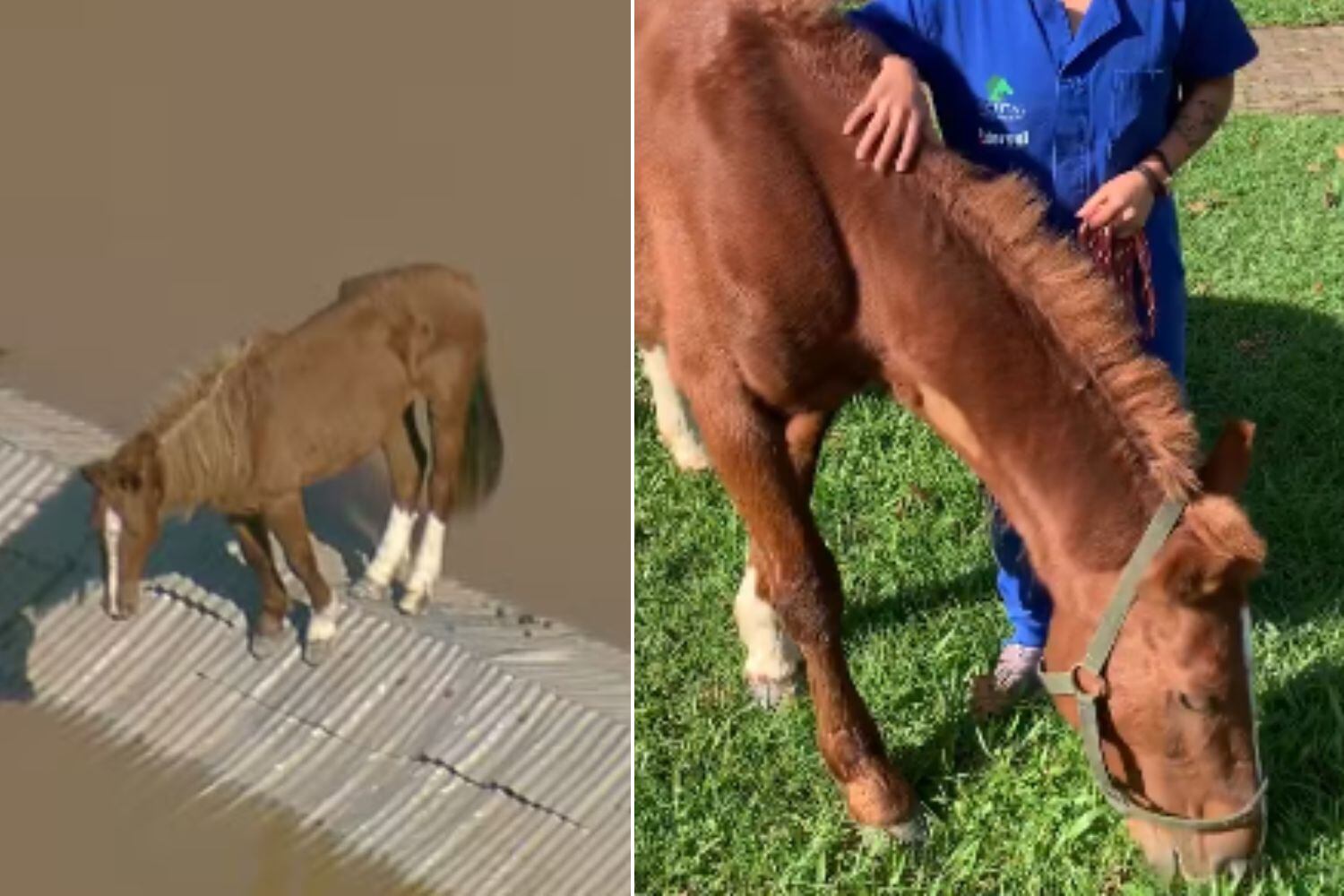 O caso do cavalo ilhado em um telhado repercutiu muito nas redes sociais na manhã do último dia 8, quando uma equipe da TV Globo mostrou o animal imóvel em um pequeno espaço, cercado pela água, em Canoas.