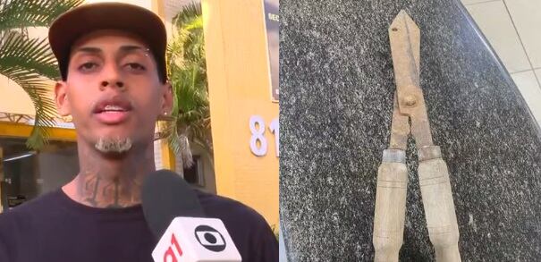 “Logo depois que eu entrei no condomínio, fui seguindo até a casa do cliente, sendo que quem estava na rua era esse senhor. Ele estava com a tesoura de jardinagem e uma faca pequena. Eu falei: ‘Entrega da pizzaria’, e ele ameaçou bater com a tesoura no meu rosto”, relatou Marlon.