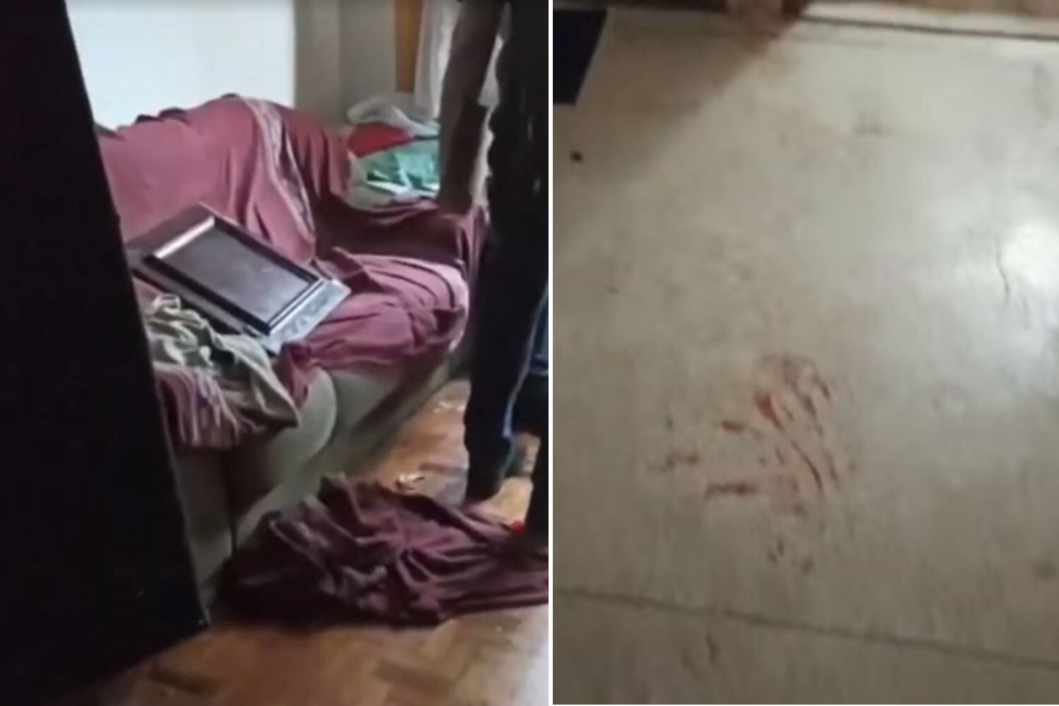 O apartamento da família estava completamente revirado, com vários móveis jogados, além de marcas de sangue em vários cômodos. A PM diz que a cena mostra que o idoso lutou com o neto durante o ataque.