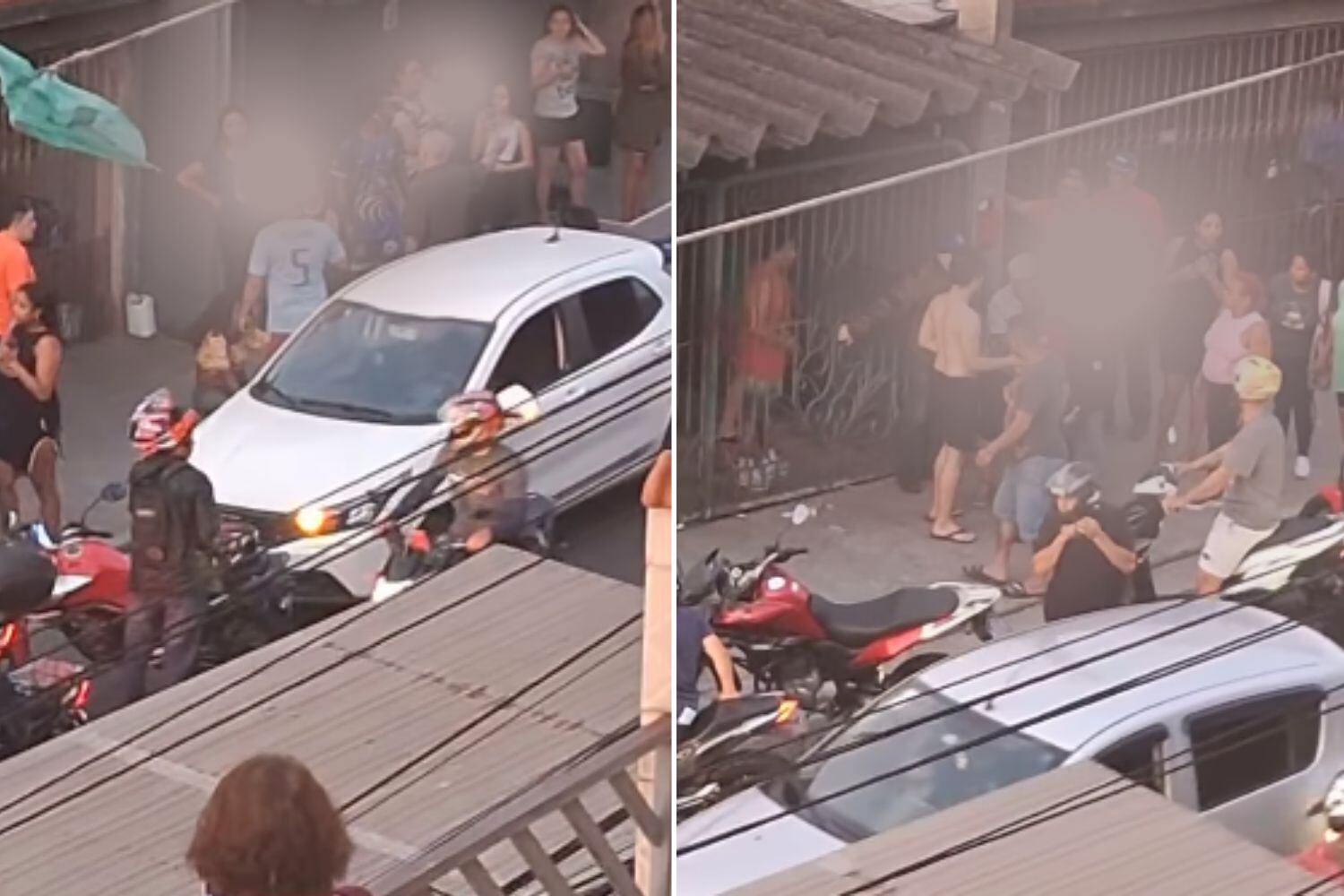 O vídeo mostra quando o motorista de app já estava do lado de fora do carro, cercado por populares, que gritavam com ele. Uma mulher chegou a dar um tapa em seu rosto, quando uma moradora abriu o portão e abrigou o condutor. Depois disso, a PM foi chamada para acalmar os ânimos.