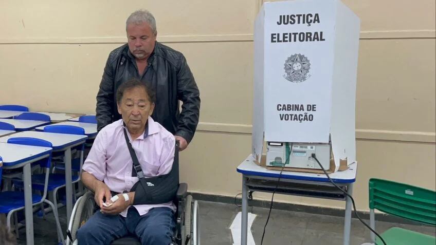 O atual prefeito se emocionou ao chegar no local de votação em uma cadeira de rodas –o prefeito foi alvo de um atentado a tiros em 18 de outubro.