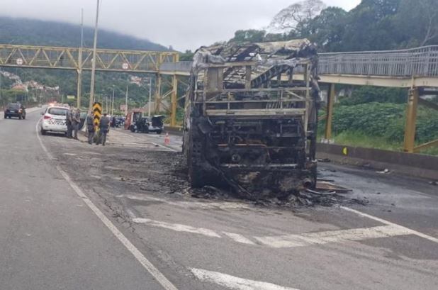 Agentes da Polícia Rodoviária Federal (PRF) foram acionados para a ocorrência e, no local, encontraram um ônibus incendiado e outro depredado pelos torcedores.