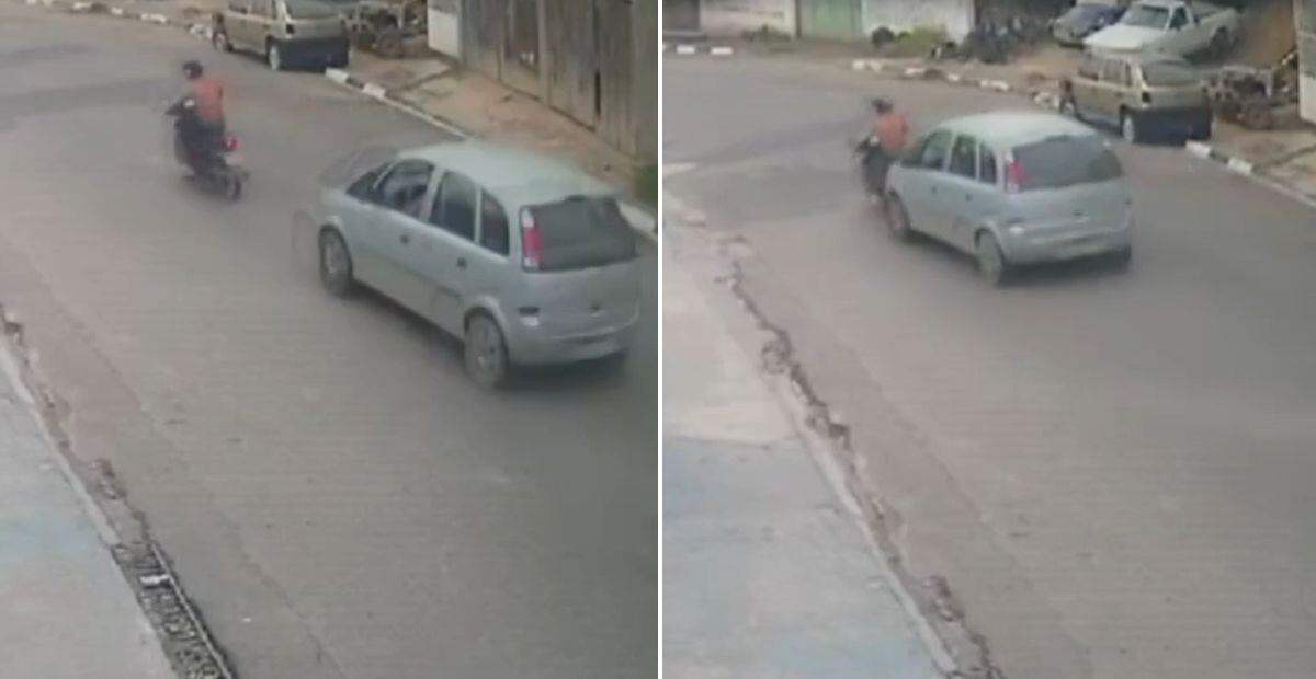 O caso aconteceu por volta das 15h40 do último sábado (2), na Rua Tancredo Carravieri. As imagens mostram quando o motociclista seguia na via e foi perseguido pelo condutor do carro. Após o atropelamento, o autor fugiu sem prestar socorro.