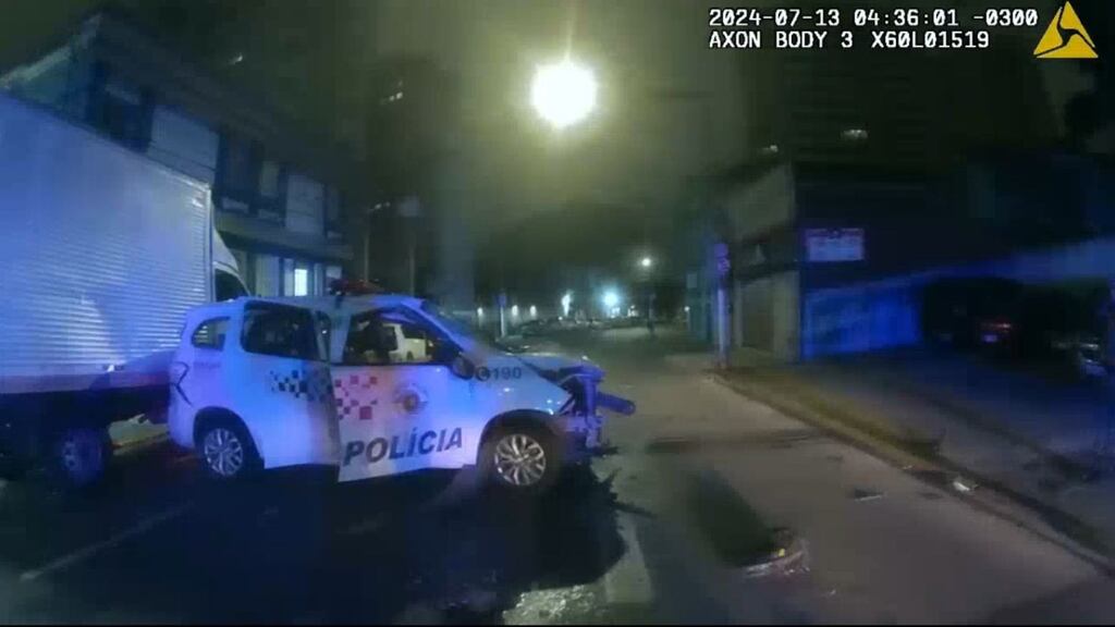 Os policiais mencionam que o outro carro da polícia também estava acelerando ao lado. Durante a ação, as viaturas chegaram a ligar as sirenes. Após alguns segundos, o motorista perdeu o controle do veículo e colidiu com a viatura. Os agentes de segurança envolvidos no ato impróprio estão fazendo serviços administrativos atualmente.