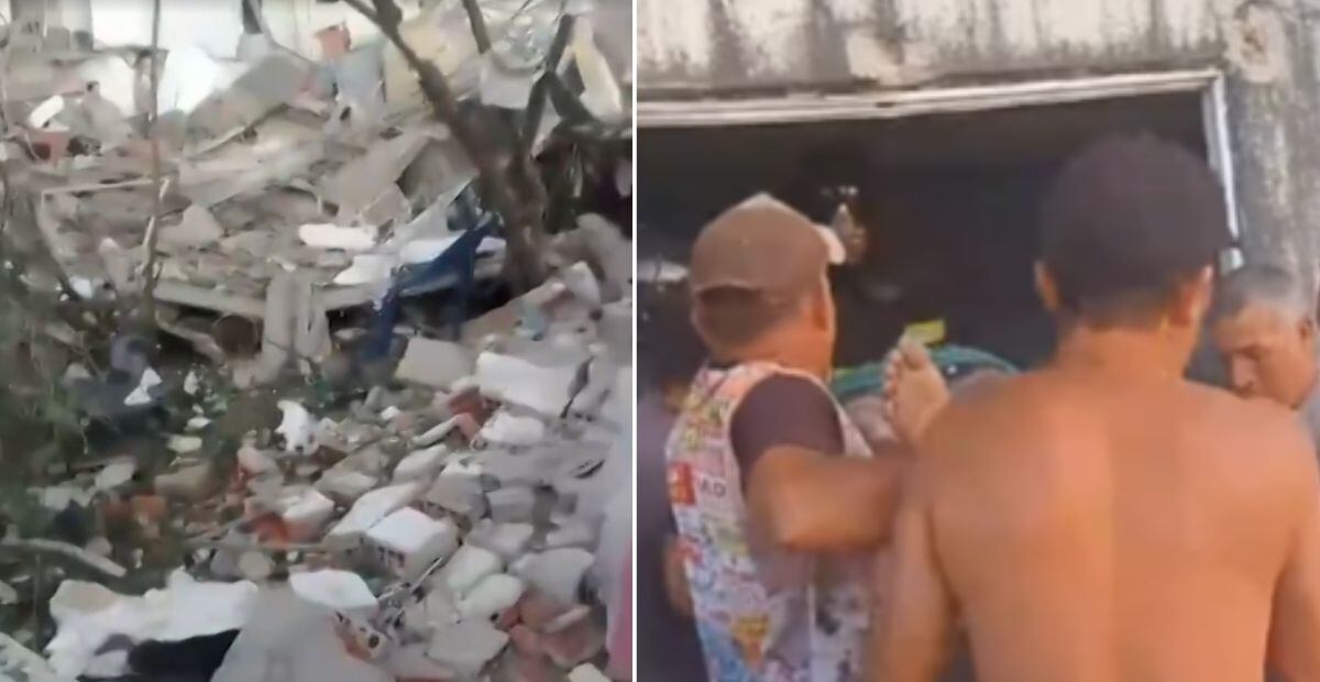 Imagens que circulam nas redes sociais mostram o local do desabamento e também a operação de resgate das vítimas (assista abaixo):