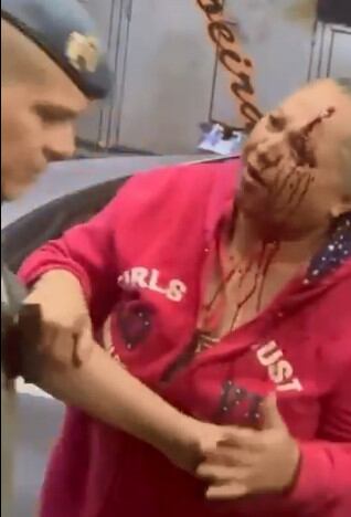 Lenilda aparece aos prantos e com o rosto sangrando nas imagens. Ela precisou de atendimento médico e, em seguida, foi levada para uma delegacia.