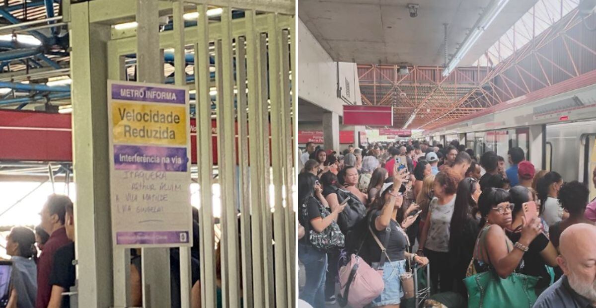 Passageiros enfrentam transtornos nas estações da Linha 3-Vermelha do Metrô, em São Paulo, desde a manhã desta quinta-feira (12). Uma falha faz com que os trens operem com velocidade reduzida e maior tempo de parada entre as estações Palmeiras-Barra Funda e Corinthians-Itaquera. Ônibus do sistema Paese foram acionados para ajudar no atendimento, mas muitos usuários mostraram as plataformas lotadas em postagens nas redes sociais (veja algumas abaixo):
