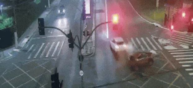 Imagens de uma câmera de segurança mostraram o momento em que um carro de luxo avança o sinal vermelho em um cruzamento da Zona Sul de São Paulo, provocando um acidente na madrugada desta sexta-feira (13). Os carros envolvidos no acidente ficaram completamente destruídos após o impacto.