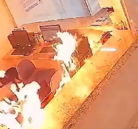 Imagens de câmeras de segurança da Santa Casa mostram a mulher abrindo a embalagem de álcool, discutindo com uma funcionária, que se retira assim que a mulher começa a espalhar o líquido nos computadores da mesa. Em seguida, ela risca alguns palitos de fósforo e as chamas começam.