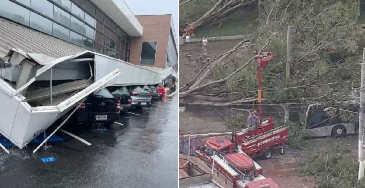 Um vídeo que circula nas redes sociais também mostra que outro supermercado teve problemas no telhado, ficando cheio de água durante a forte chuva (veja abaixo). Também não há registro de feridos no local.