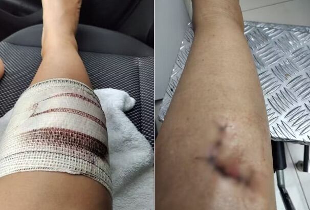 Cristina afirmou que não havia observado nenhum tumulto na praia no momento do incidente. Ela sofreu um corte profundo na perna direita, foi atendida no Pronto-Socorro Central, onde levou pontos e foi liberada.