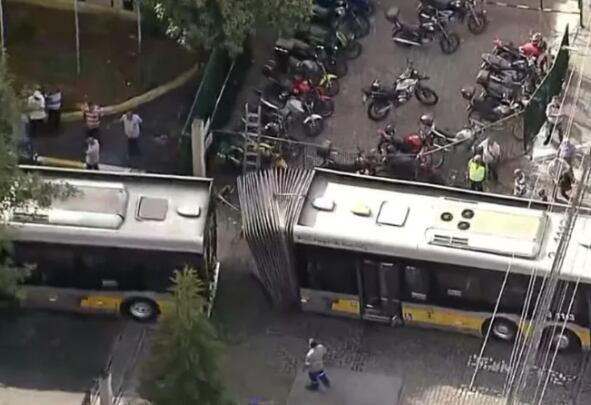 Um ônibus articulado da Viação Metrópole Paulista teve um problema na “sanfona” e se partiu ao meio na Avenida Águia da Haia, na Zona Leste de São Paulo, na manhã desta segunda-feira (20). O coletivo seguia como “reservado” e não levava passageiros no momento do incidente. Ninguém ficou ferido.