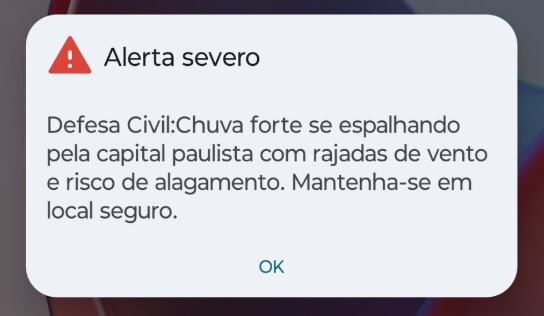 Um alerta severo emitido pela Defesa Civil, nesta sexta-feira (24), assustou os paulistanos. Pela primeira vez, o alerta foi emitido na cidade de São Paulo, chamando atenção para as fortes rajadas de vento e tempestades, além de orientar que os cidadãos se mantenham seguros.