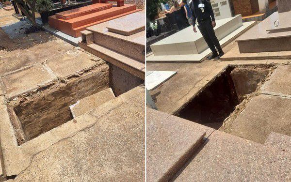 Na tarde do último domingo, dia 26 de janeiro, uma mulher, que não teve a identidade divulgada, e a sobrinha dela, de apenas 3 anos, ficaram feridas ao cair dentro da galeria de manutenção de um cemitério.