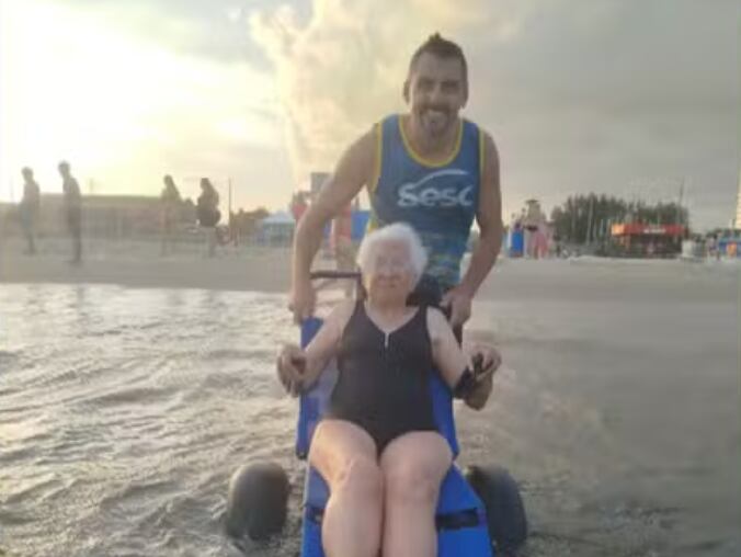 “É muita vitalidade, afinal de contas, ela tá quase completando 100 anos. Foi lindo. Melhorar a questão da acessibilidade para idosos e pessoas com baixa mobilidade é fundamental e é uma luta. Vejo quanto é difícil a acessibilidade nesses lugares em que as pessoas, às vezes, não podem nem chegar porque tem de caminhar todo o trajeto e ir à beira da praia. Muitas não têm condições de aproveitar e viver o verão e a vida como mereciam”, disse Luciana.