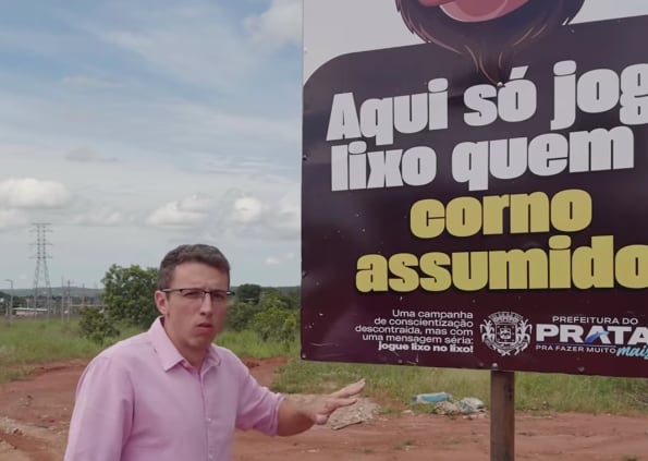 Uma campanha inusitada contra o descarte irregular de lixo em Prata, Minas Gerais, viralizou após o prefeito Xexéu Marcel adotar um tom irreverente. “Aqui, só joga lixo quem é corno assumido” estampou uma placa e um ponto da cidade, sendo parte de campanha para diminuir o descarte irregular de lixo no local. No vídeo viral abordando os responsáveis em potencial pelos descartes, em tom bem-humorado, ele diz: “Em Prata, só joga lixo em lugar que não pode quem é corno assumido.”
